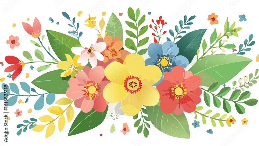 Whimsical Vector Floral Design With Bright Flowers And Wallpaper Mural - Decorly Solutions | Decorly Solutions