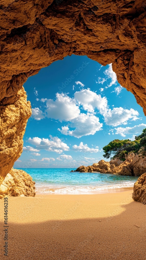 Serene Coastal View From Cave Opening Overlooking Clear Wallpaper Mural - Decorly Solutions | Decorly Solutions