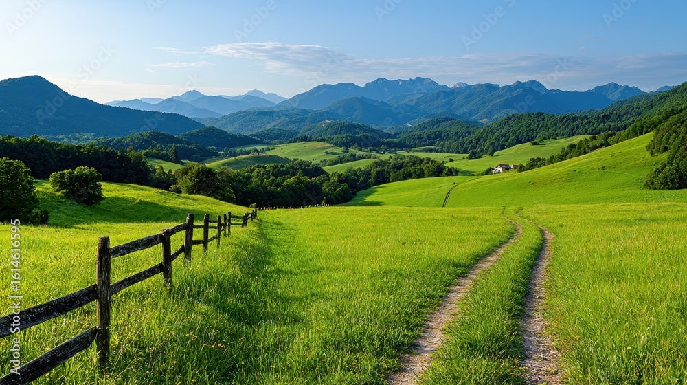 Scenic Mountain Landscape With Green Pastures And Quiet Wallpaper Mural - Decorly Solutions | Decorly Solutions