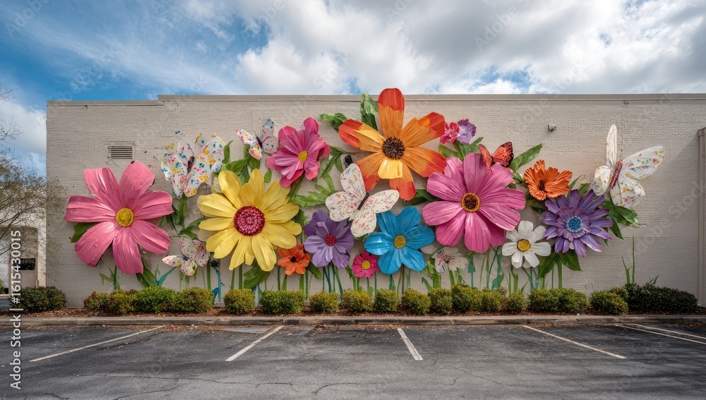 Vibrant Floral Mural Adorns A Light Beige Building Wallpaper Mural - Decorly Solutions | Decorly Solutions