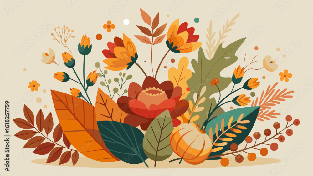 Vector Art Of A Vibrant Autumn Floral Arrangement Wallpaper Mural - Decorly Solutions | Decorly Solutions