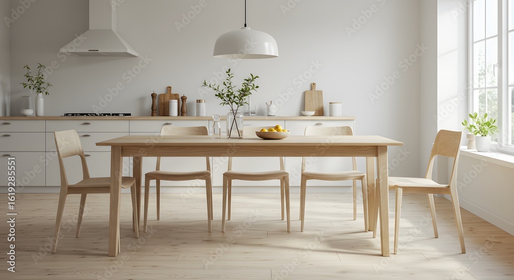 Modern Dining Area With Wooden Table and Elegant Decor in Bright, Minimalist Room