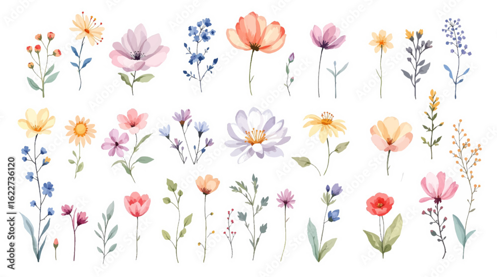 Set Of Watercolor Flowers Wallpaper Mural - Decorly Solutions | Decorly Solutions