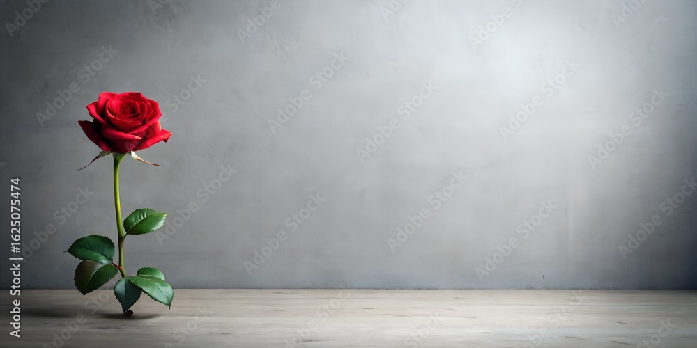 Single Red Rose Standing Tall Against A Textured Wallpaper Mural - Decorly Solutions | Decorly Solutions