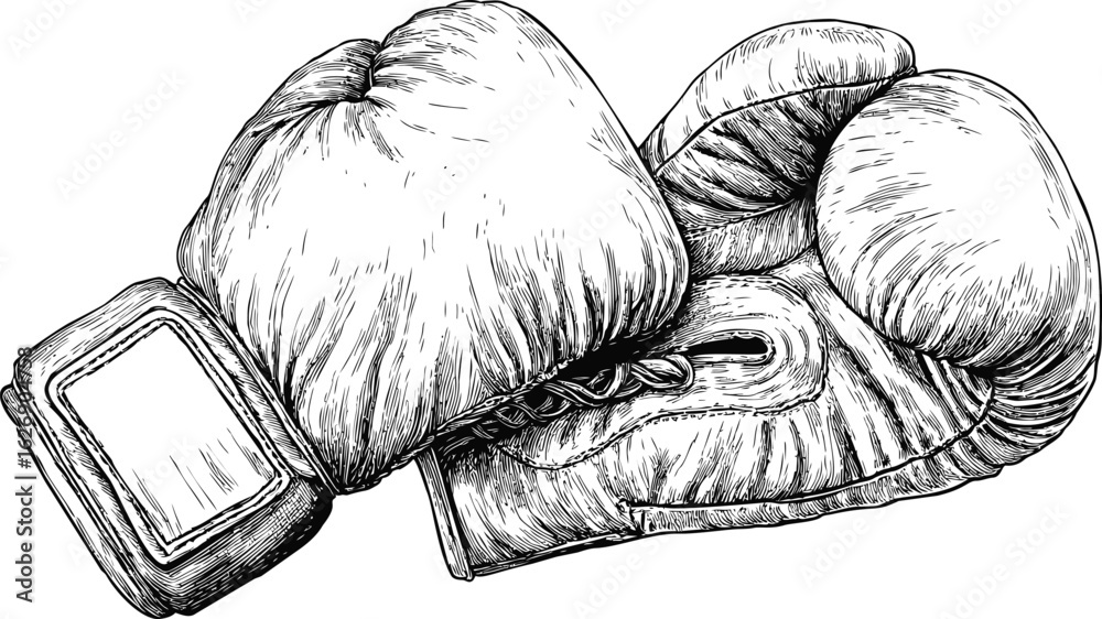 Detailed Sketch Of Vintage Boxing Gloves Showcasing Classic Wallpaper Mural - Decorly Solutions | Decorly Solutions