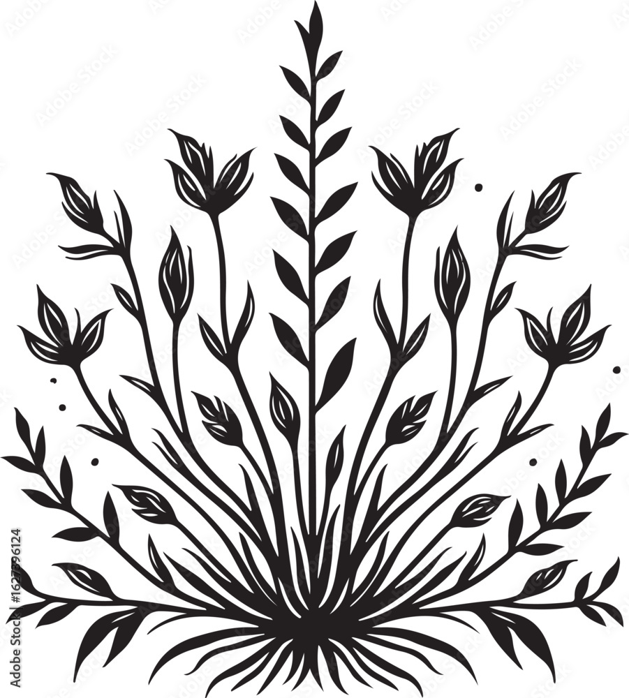 Black And White Floral Vector Set: Botanical Silhouettes For Design Eps