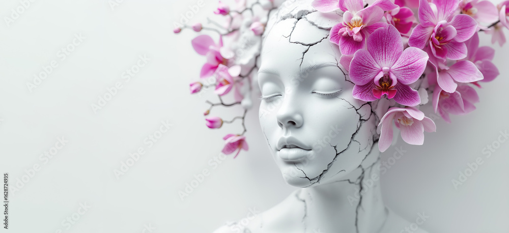 Elegant cracked white mannequin head adorned with beautiful Wallpaper