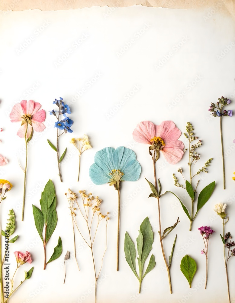 Pressed Botanical Specimens On Handmade Paper Background – Wallpaper Mural - Decorly Solutions | Decorly Solutions