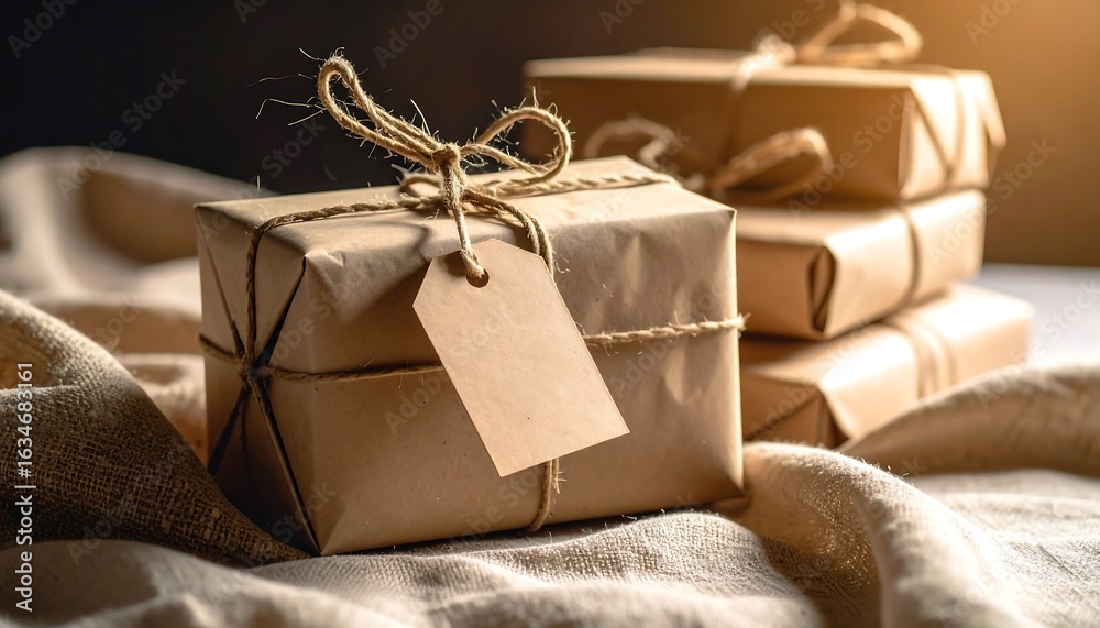 Wrapped Gift With Tag And Jute String On Wallpaper Mural - Decorly Solutions | Decorly Solutions