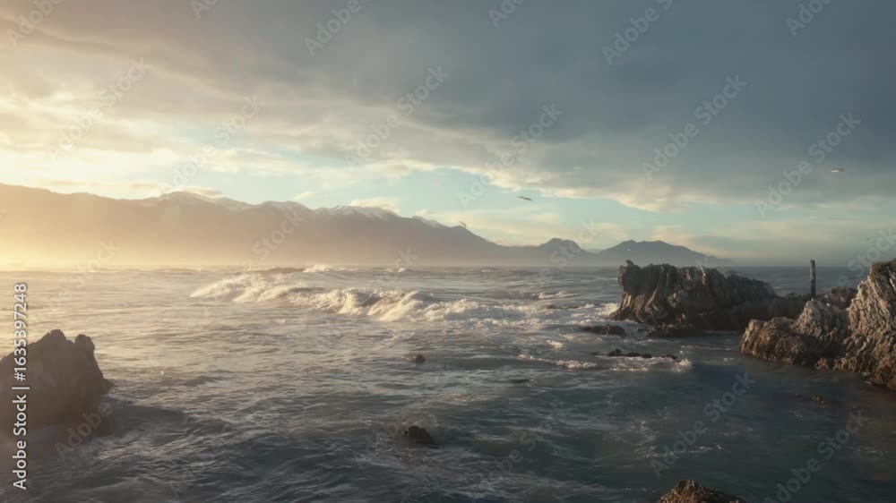Waves Crashing Onto A Rocky Shore In A Wallpaper Mural - Decorly Solutions | Decorly Solutions