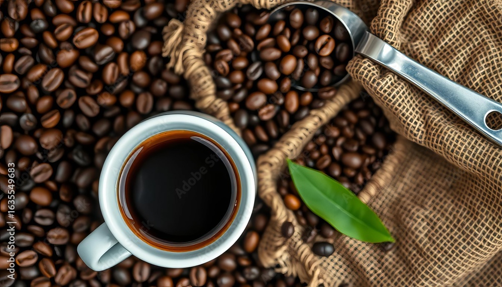 Two Espresso Cups Coffee Beans Metal Scoop Burlap Wallpaper Mural - Decorly Solutions | Decorly Solutions