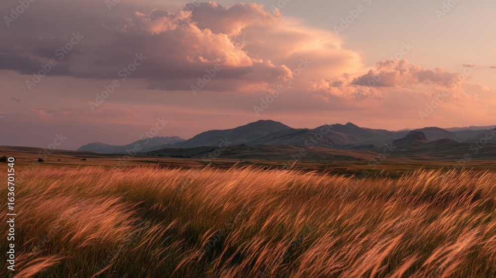 Wind-swept Grassland Under Warm Peach And Beige Evening Wallpaper Mural - Decorly Solutions | Decorly Solutions