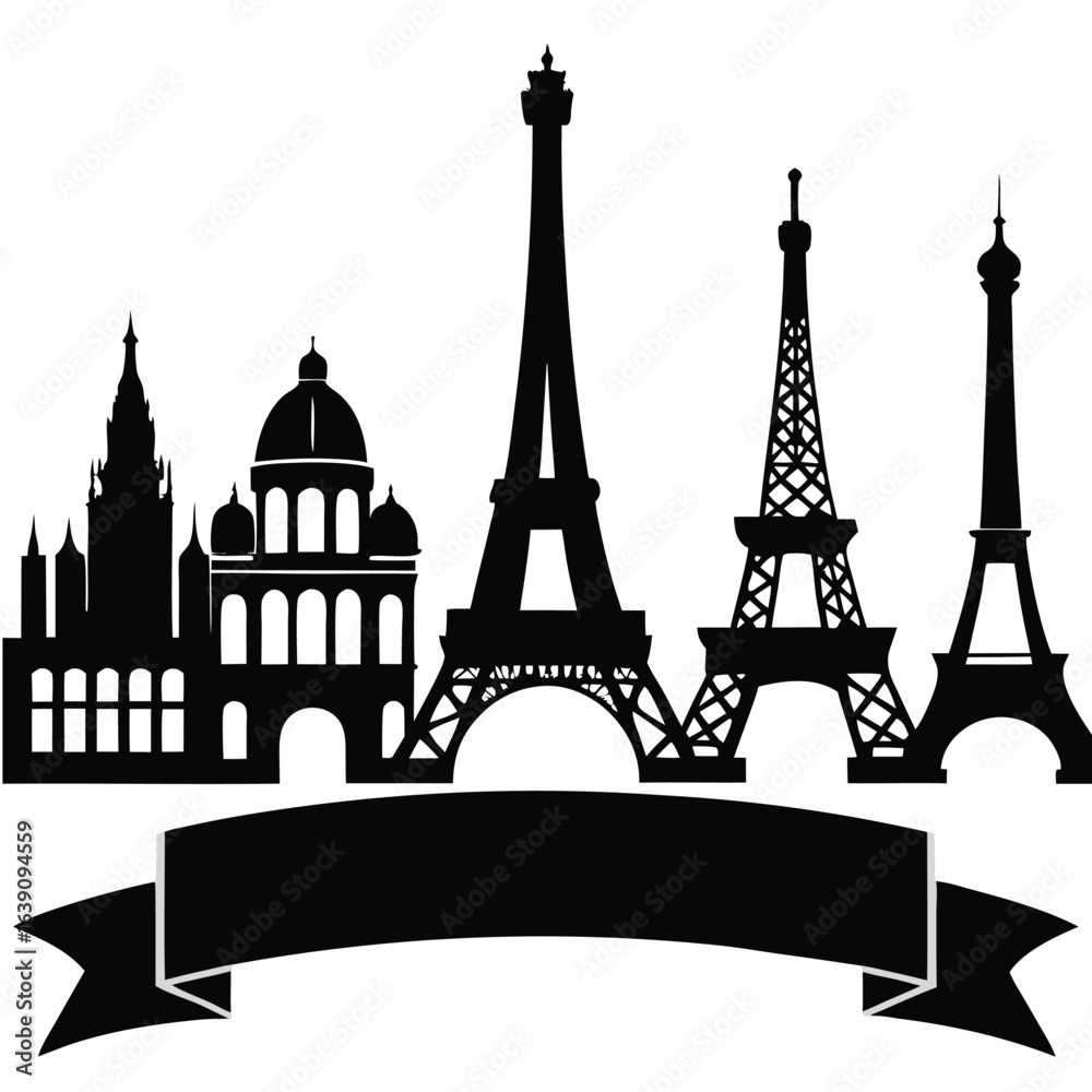Paris Skyline Silhouette Iconic Landmarks & Cityscape Vector Wallpaper Mural - Decorly Solutions | Decorly Solutions
