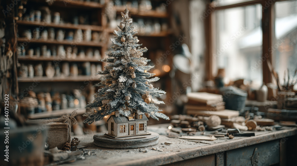 Small Intricately Detailed Christmas Tree With Lights Stands Wallpaper Mural - Decorly Solutions | Decorly Solutions