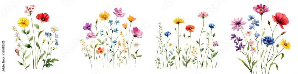 Watercolor Wildflower Border Set: Colorful Meadow Flowers on Wallpaper