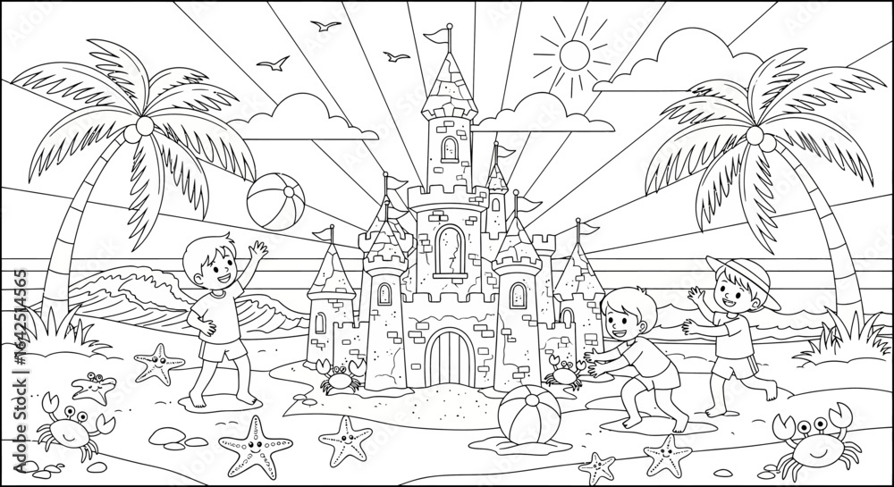 Happy Children Playing On Beach With Sand Castle Wallpaper Mural - Decorly Solutions | Decorly Solutions