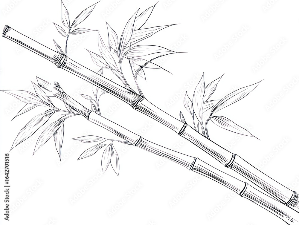 A Sketch Of Bamboo Stalks And Leaves Wallpaper Mural - Decorly Solutions | Decorly Solutions