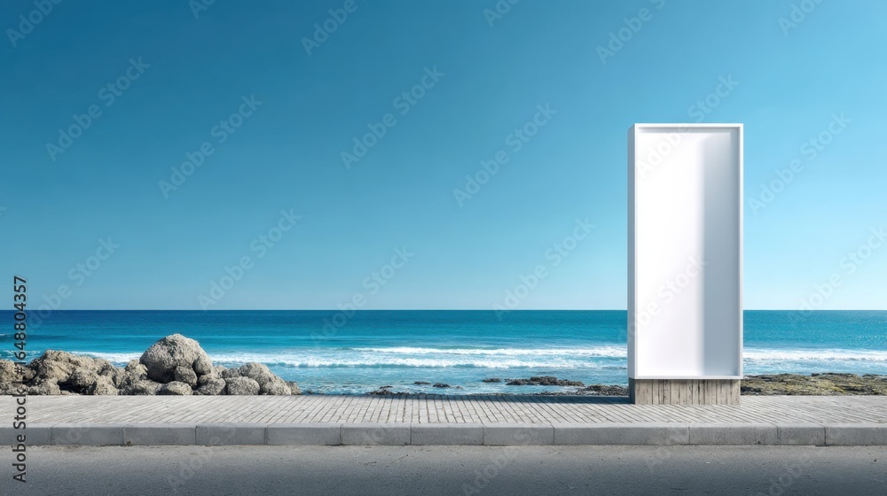 A Minimalist Beach Scene Featuring A Tall White Wallpaper Mural - Decorly Solutions | Decorly Solutions