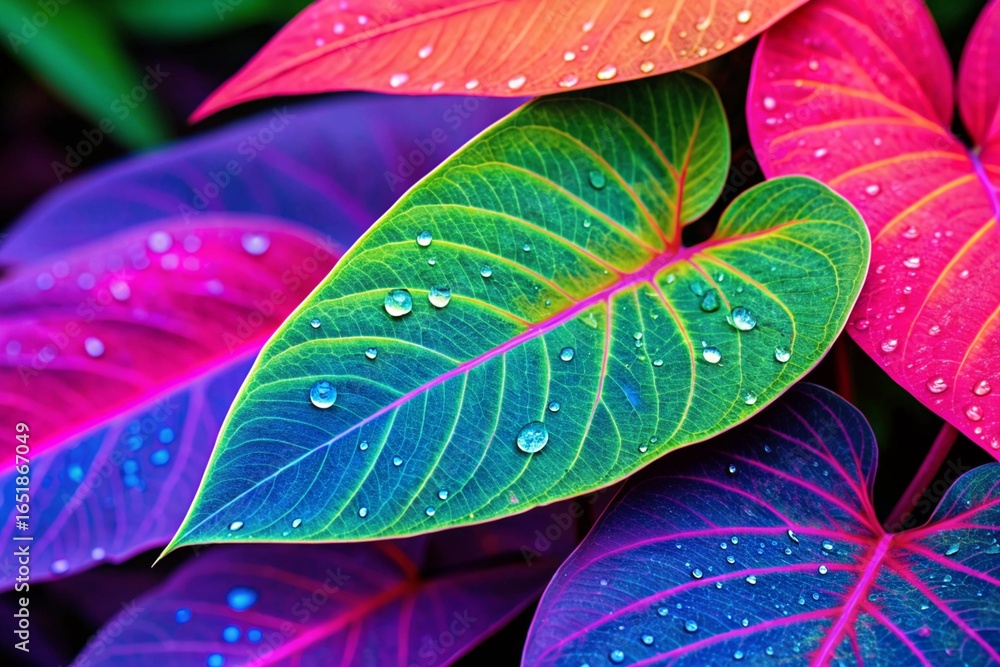 close-up of lush green leaves covered in sparkling dew drops. perfect natural background for eco, spa, or wellness projects. vibrant and fresh.