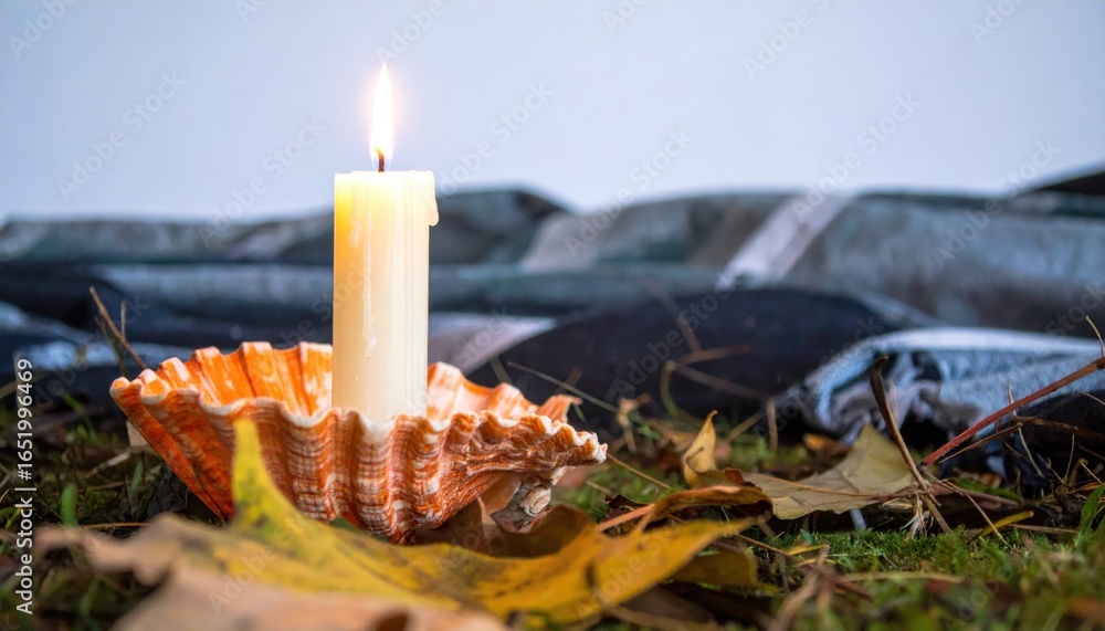 Elegant White Candle In Shell Holder Surrounded By Wallpaper Mural - Decorly Solutions | Decorly Solutions
