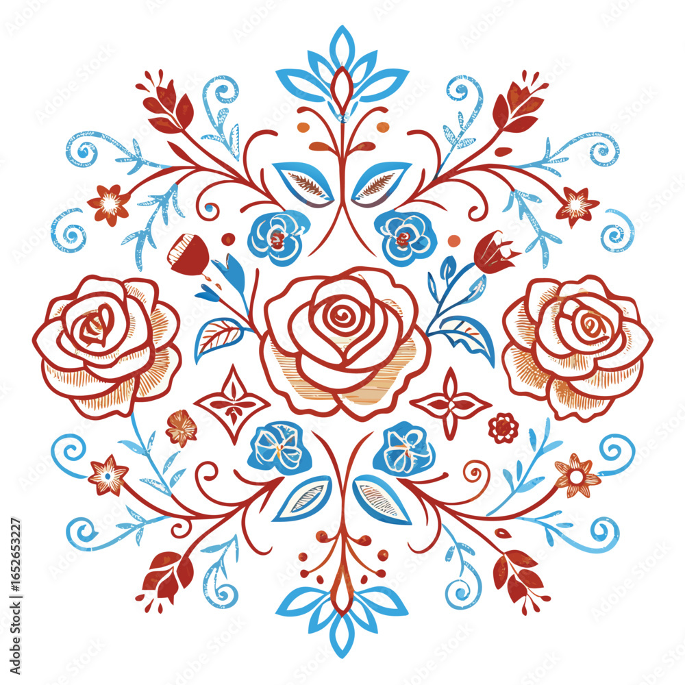 Seamless floral pattern with roses, watercolor. Vector illustration. Vintage floral background. Flowing repeat pattern, pink and red floral on design background