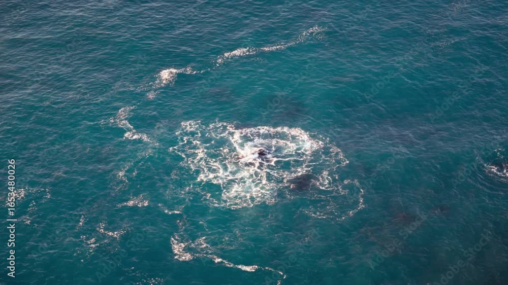 Close up drone footage looking down onto the deep blue sea