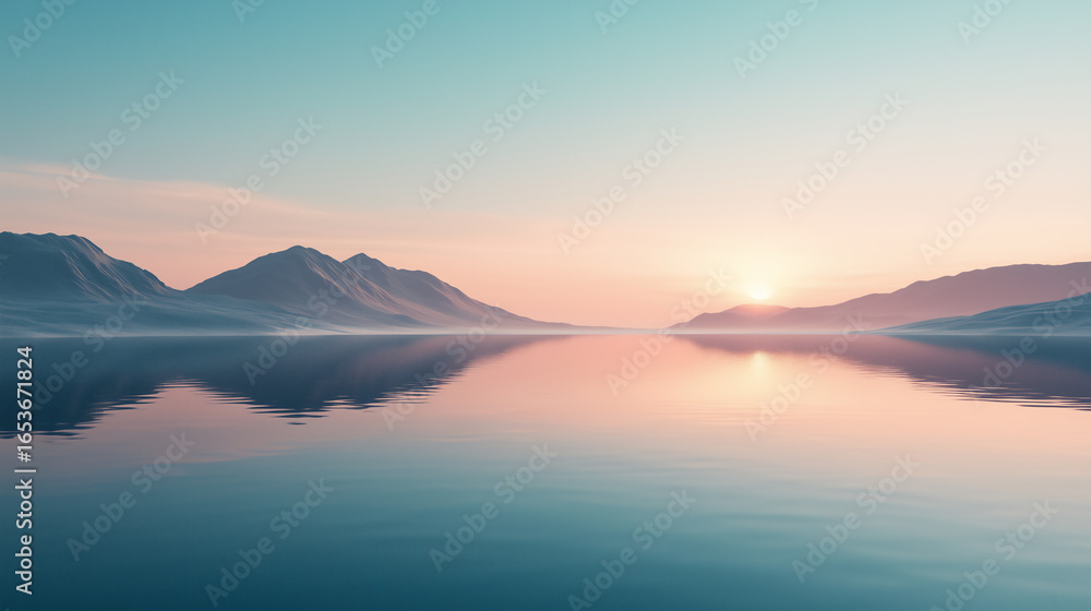 Serene Mountain Lake Reflection: A Pastel Sunrise Panorama