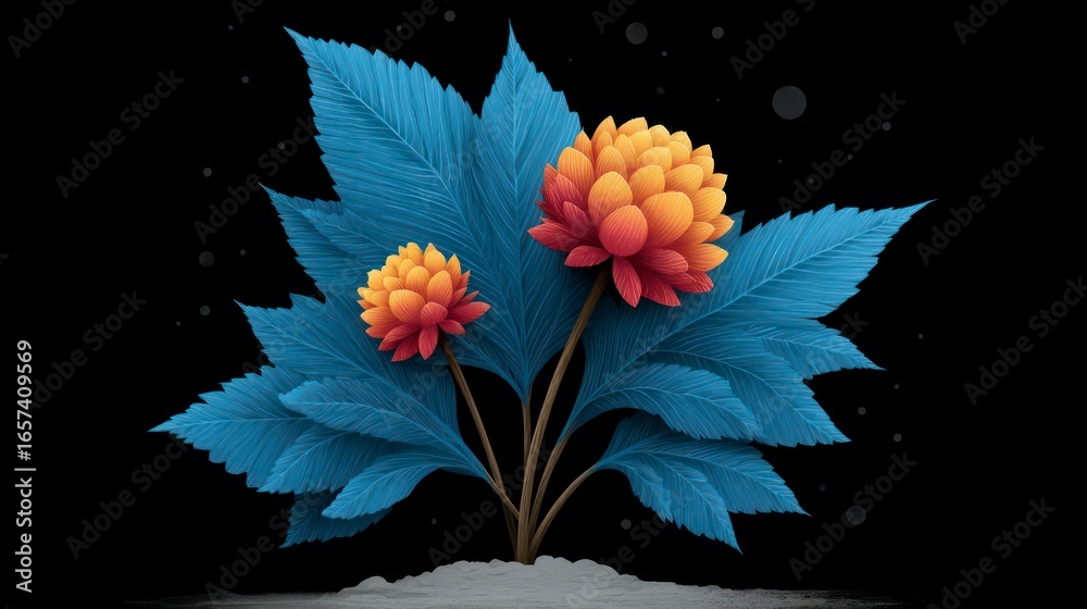 Two Vibrant Orange And Red Flowers Bloom With Wallpaper Mural - Decorly Solutions | Decorly Solutions