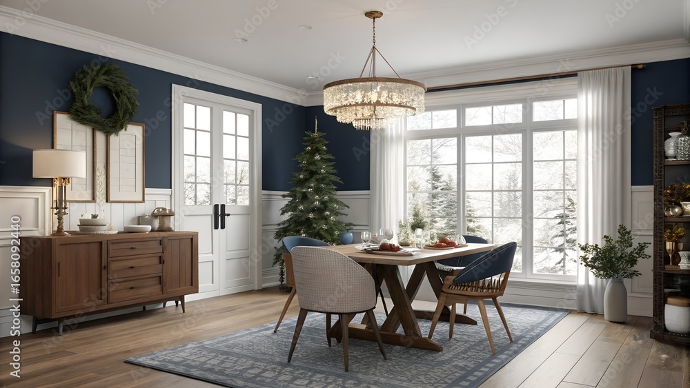 Elegant dining room with natural light and modern decor