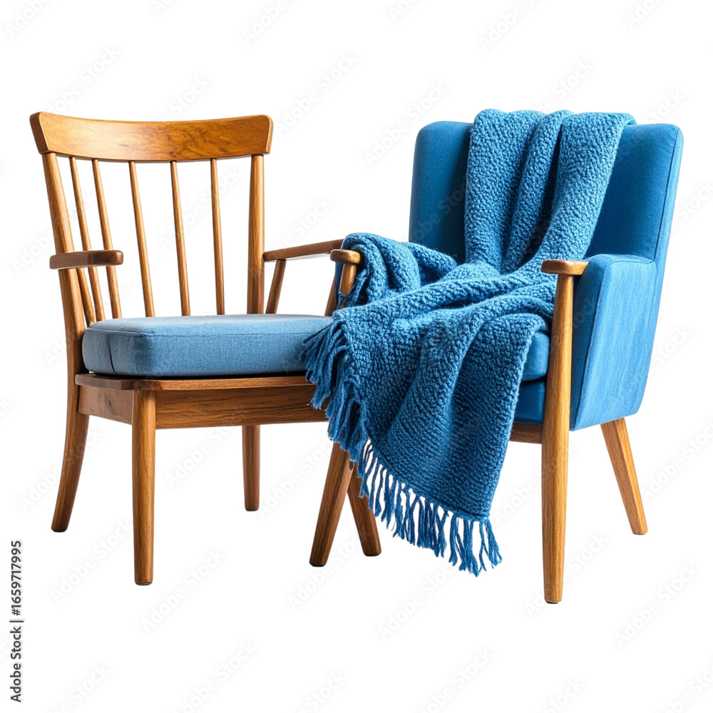 Classic Wooden Armchair With A Blue Blanket A Wallpaper Mural - Decorly Solutions | Decorly Solutions