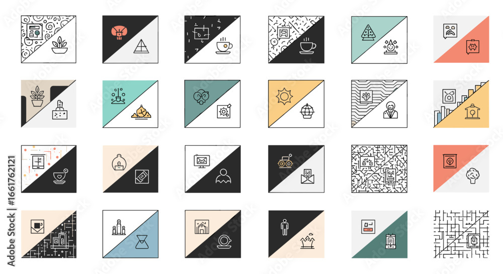 Collection of split square illustrations featuring various l Wallpaper