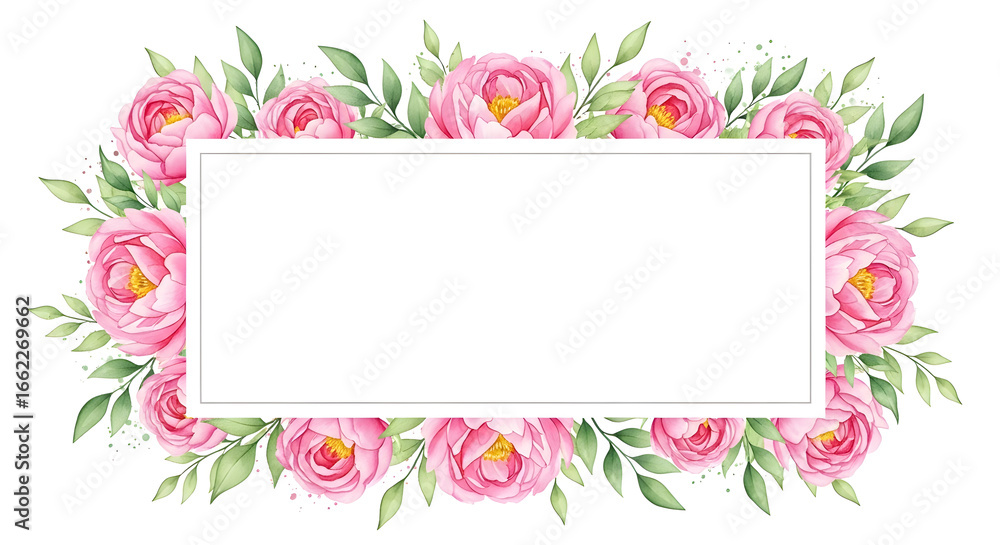 Watercolor Floral Frame With Pink Rose Flowers And Wallpaper Mural - Decorly Solutions | Decorly Solutions