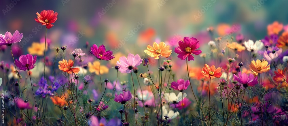 Colorful Wildflower Meadow With Blooming Flowers In Vibrant Wallpaper Mural - Decorly Solutions | Decorly Solutions
