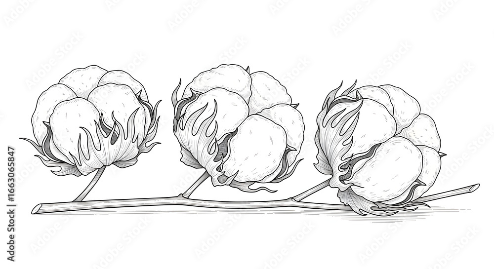 A Simple Black And White Line Art Illustration Of A Soft Cotton Flower Boll, Representing Natural Fabric, Purity, And Sustainable Agriculture.