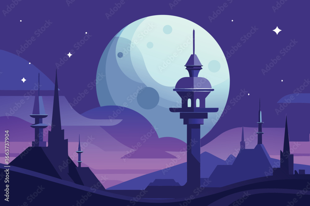 A Captivating Cityscape At Night Featuring Towering Structures Wallpaper Mural - Decorly Solutions | Decorly Solutions