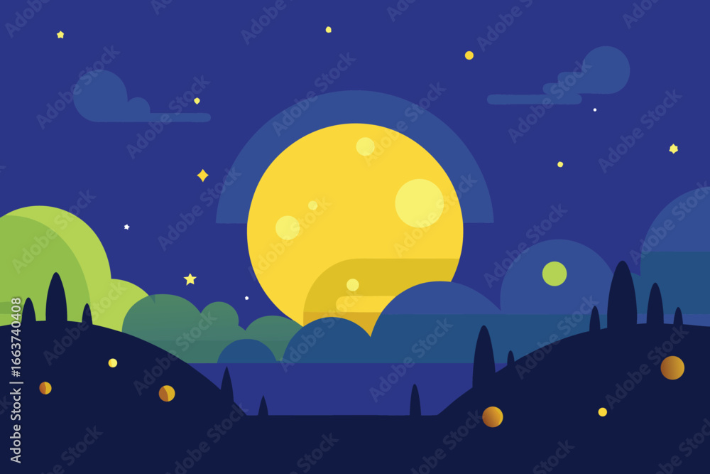 A Serene Night Landscape With A Full Moon Wallpaper Mural - Decorly Solutions | Decorly Solutions
