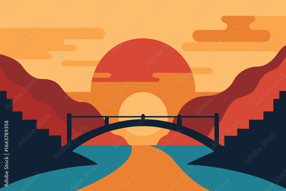 A Picturesque Sunset Over A Bridge Spanning A Wallpaper Mural - Decorly Solutions | Decorly Solutions