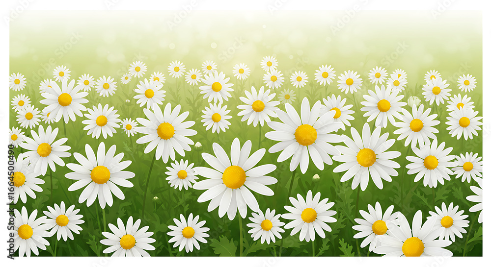 Sunrise Meadow Daisies: Blooming Wildflowers in Green Field