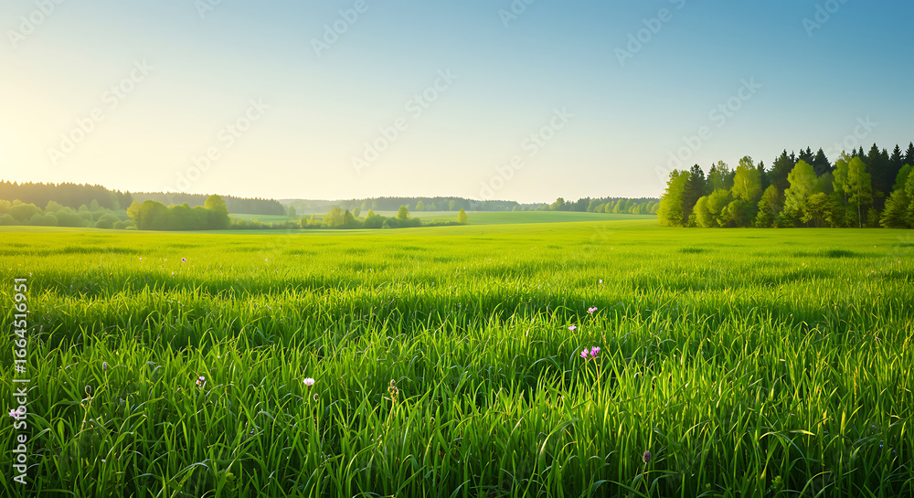 Green vibrant field in spring