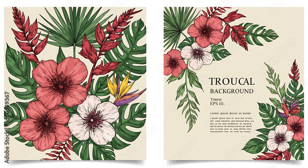 Hand-drawn Tropical Paradise Botanical Illustrations Wallpaper Mural - Decorly Solutions | Decorly Solutions
