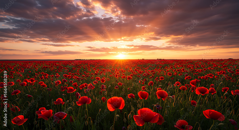 Vibrant Red Poppies Sunset Field Landscape Wallpaper Mural - Decorly Solutions | Decorly Solutions