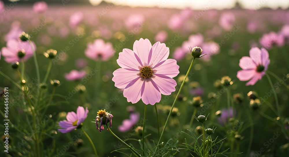 Beautiful cosmos flower blooming in the summer garden field in nature.