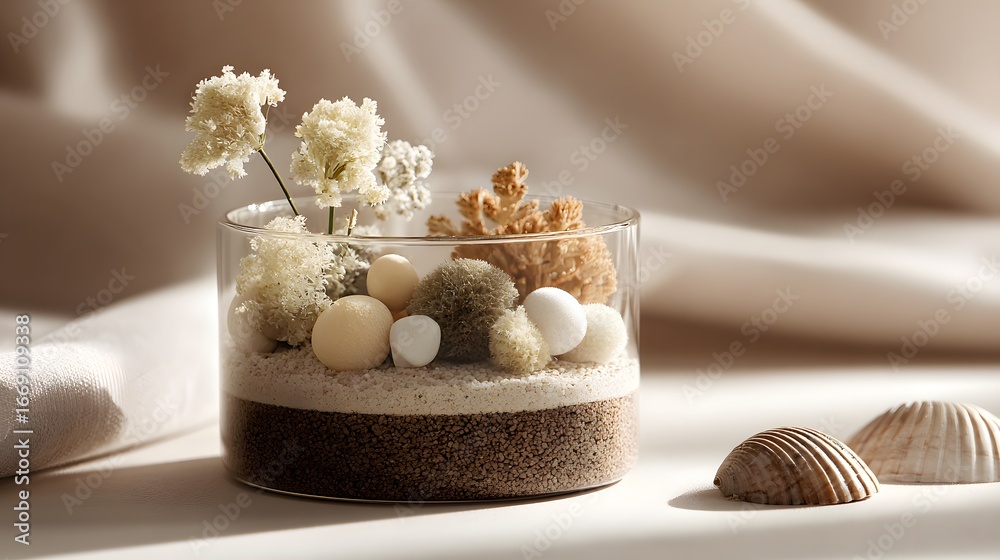 A delicate miniature terrarium showcasing a layered design w Wallpaper