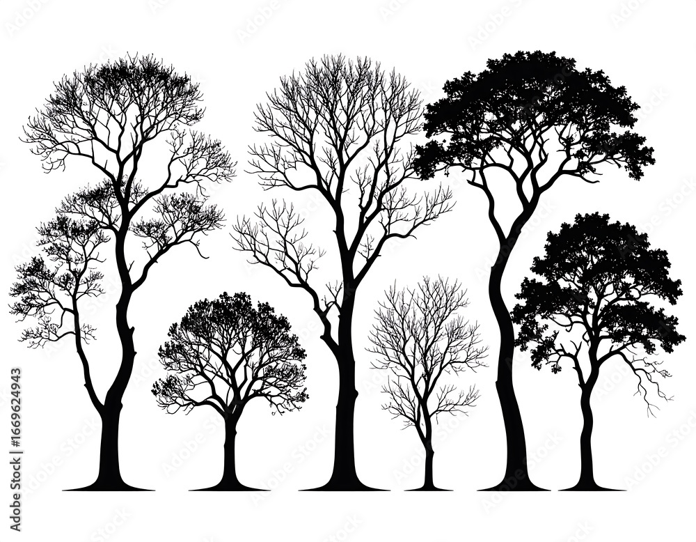 Silhouettes Of Various Trees Against A White Background Wallpaper Mural - Decorly Solutions | Decorly Solutions