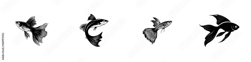 Four Black Guppy Fish Silhouettes Swimming In Various Wallpaper Mural - Decorly Solutions | Decorly Solutions