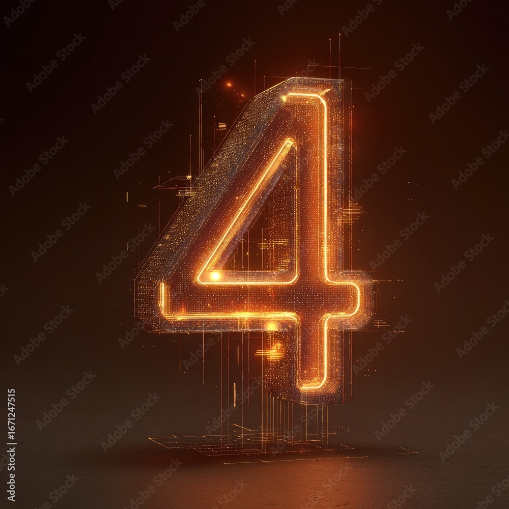 Glowing Metallic Number Four Wallpaper Mural - Decorly Solutions | Decorly Solutions