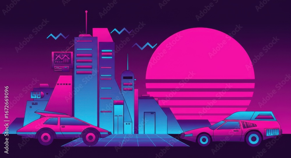 “a Retro-futuristic Vector Illustration Blending Neon Gradients Geometric Wallpaper Mural - Decorly Solutions | Decorly Solutions
