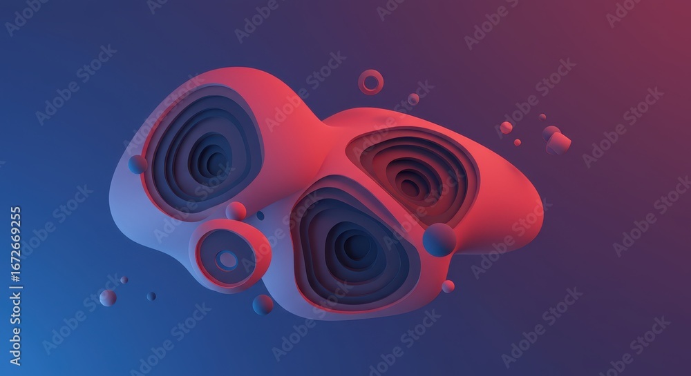 “a Hybrid 3d-meets-flat Vector Graphic—layered 3-dimensional Forms Overlaid On Flat Background For Modern Depth.”