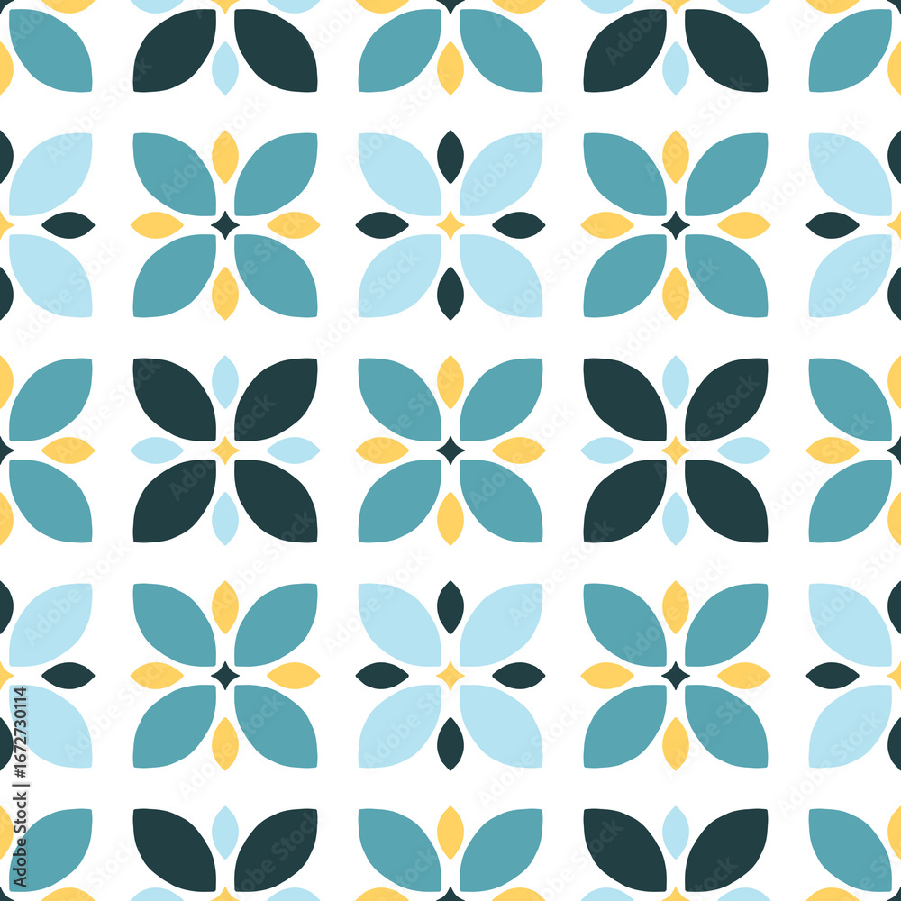 Retro Floral Geometric Pattern In Blue And Yellow Wallpaper Mural - Decorly Solutions | Decorly Solutions