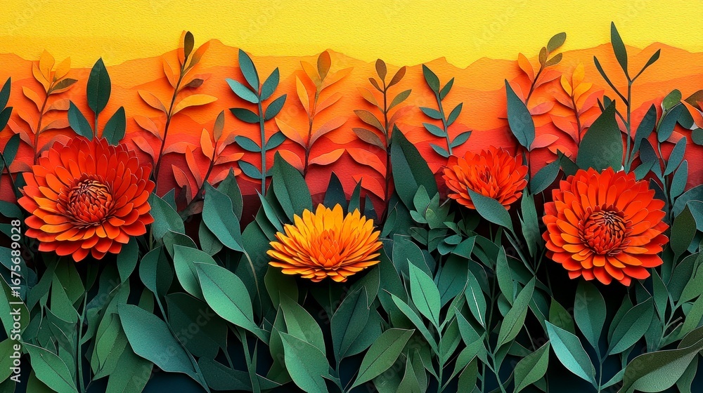 Festive Colorful Floral Cutout Collage With Bright Illustrations Wallpaper Mural - Decorly Solutions | Decorly Solutions
